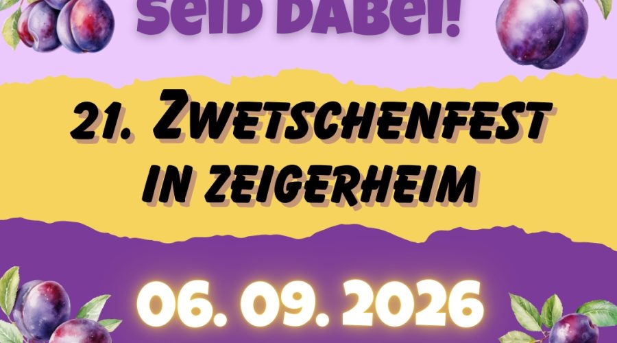 21. Zeigerheimer Zwetschenfest06. September 2026….im idyllischen Fachwerkdörfchen Zeigerheim.Wir, das sind die Mitglieder des ansässigen Heimatvereins, freuen uns dass Sie mehr über unser Dorf und unser Vereinsleben erfahren wollen.Alle wichtigen Neuigkeiten rund ums Dorf und unsere Aktivitäten findet ihr unter Aktuelles.