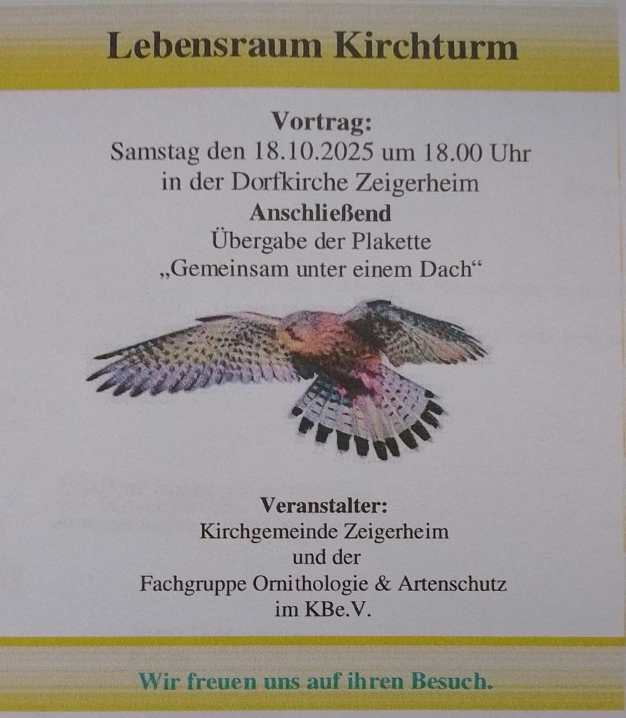 Lebensraum Kirchturm Beitrags-Navigation Vorheriger BeitragDie blaue Frucht in der OTZNächster BeitragHalloween in Zeigerheim 18. September 2025 Beatrice Lang Aktuelles Kommentar hinterlassen