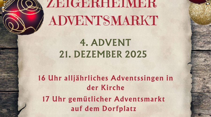 Rechtzeitig zu Beginn der Adventszeit kündigen wir wieder unseren traditionelles Adventssingen in der Zeigerheimer Kirche an. Am 21. Dezember 2025 …